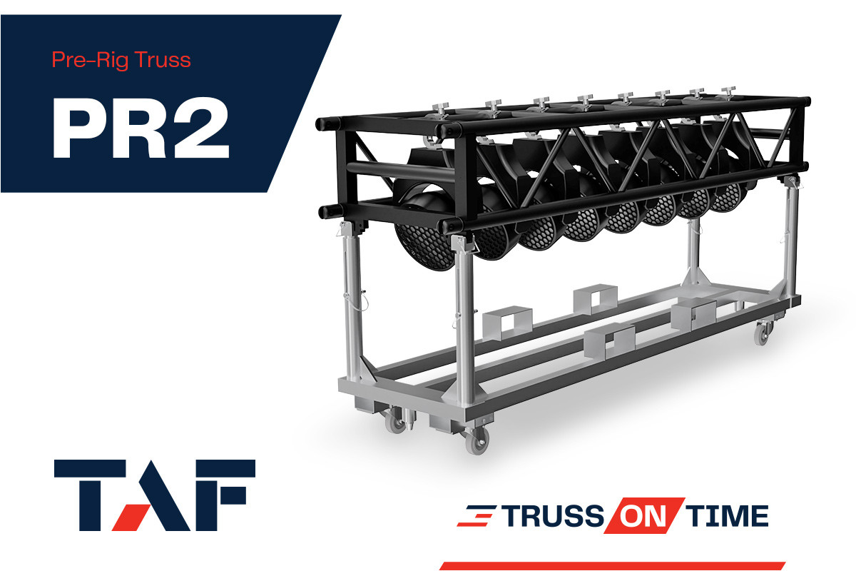 TAF’s PR2 rectangular pre-rig truss is the overwhelming choice for professionals when it comes to the storage and wheeled transport of their light fixtures. It’s as easy as rolling out of storage, into the truck and then out to the stage. Quickly and easily.