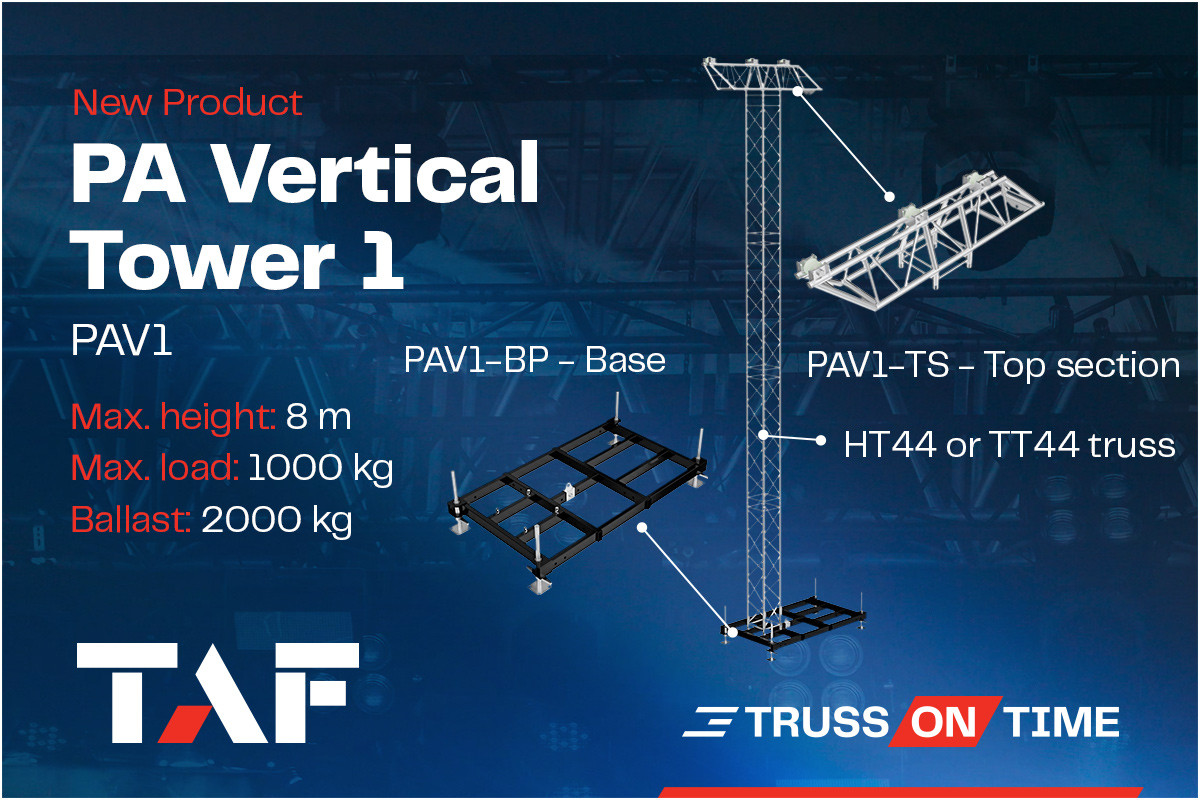 Introducing our new PA Vertical Tower 1 (PAV1)! It’s the right choice for safely and securely hanging heavy speaker arrays at your large-scale events. And due to its versatile design, the PAV1 not only serves as an independent PA tower or part of your stage setup, but also as stable support for LED walls.