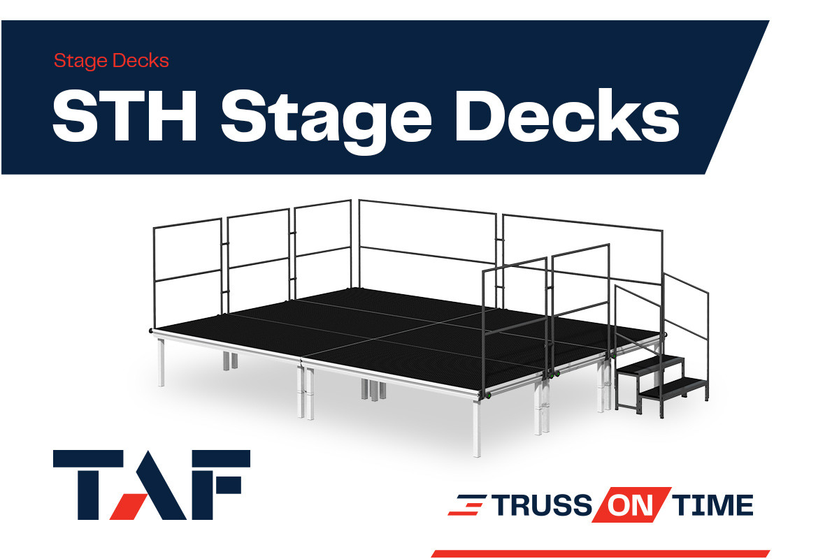 Our TUV-certified STH-1 (rectangular) and STH-2 (square) stage decks are built for a wide range of stages, catwalks, tribunes, and more. Lightweight and durable, they support up to 750 kg/m² and feature a non-slip hexa top. Stacking and transport are optimized thanks to a thickness of only 9 cm. Compatible with other systems and can be equipped with a range of round/square fixed or height adjustable legs for quick setup.