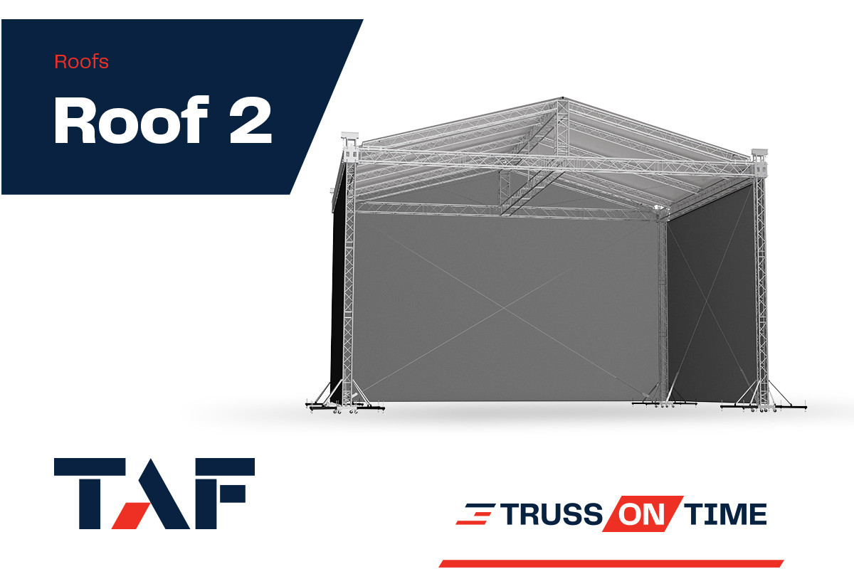 Roof 2 is the name of our line of Gable roofs, which is the most popular style of roofs for live entertainment and events. Available in three different sizes – 8 x 6 m, 10 x 8 m and 12 x 10 m, it offers impressive loading, safety and stability for your small to large events.