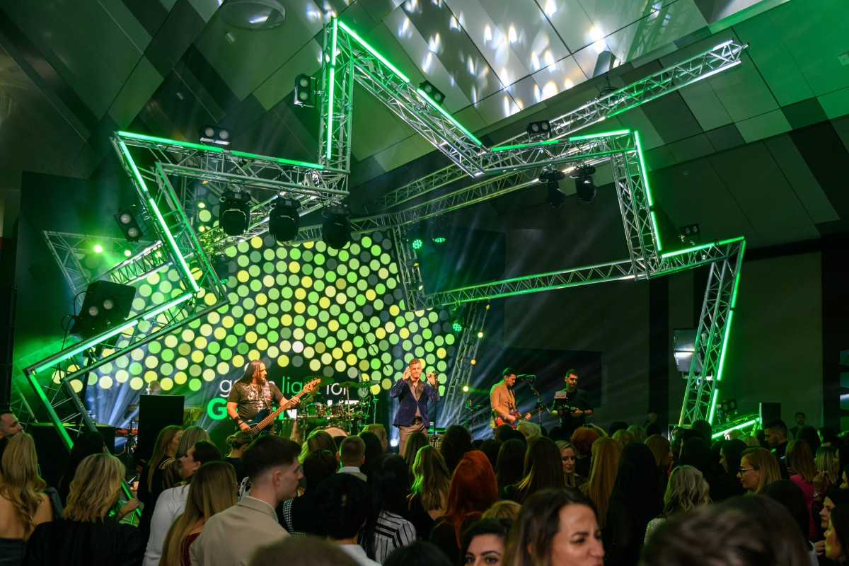 More than 2000 people from OTP Bank Serbia attended a new year’s party to celebrate the start of 2025. Serving as an impressive backdrop to the night’s activities was an ice spike truss structure bathed in green, the bank’s corporate colour.