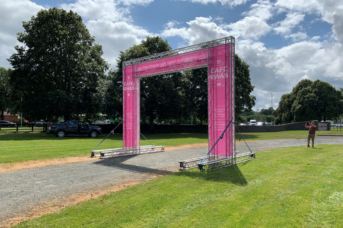 TAF Gantries are highly stable, pre-engineered structures that can serve as start/finish lines for your races or entrances/exits at your events. Made from strong and durable TAF aluminum truss, each of our six indoor/outdoor gantry designs feature a space, or spaces, for inserting your own custom vinyl banner with eye-catching graphics, logos or sponsors. An exciting structure that will stand out and be noticed!